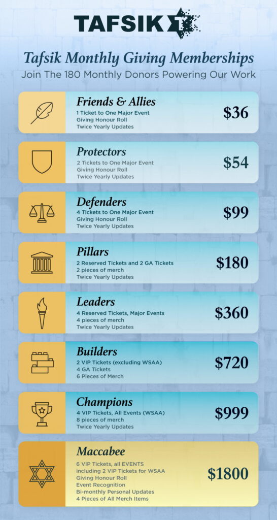 Join Tafsik’s Monthly Membership and become part of a growing community committed to combating hatred and building a more inclusive world. Each membership tier offers meaningful benefits, from exclusive event access to recognition and updates, while a portion of your monthly fee directly supports Tafsik’s mission and charitable initiatives.